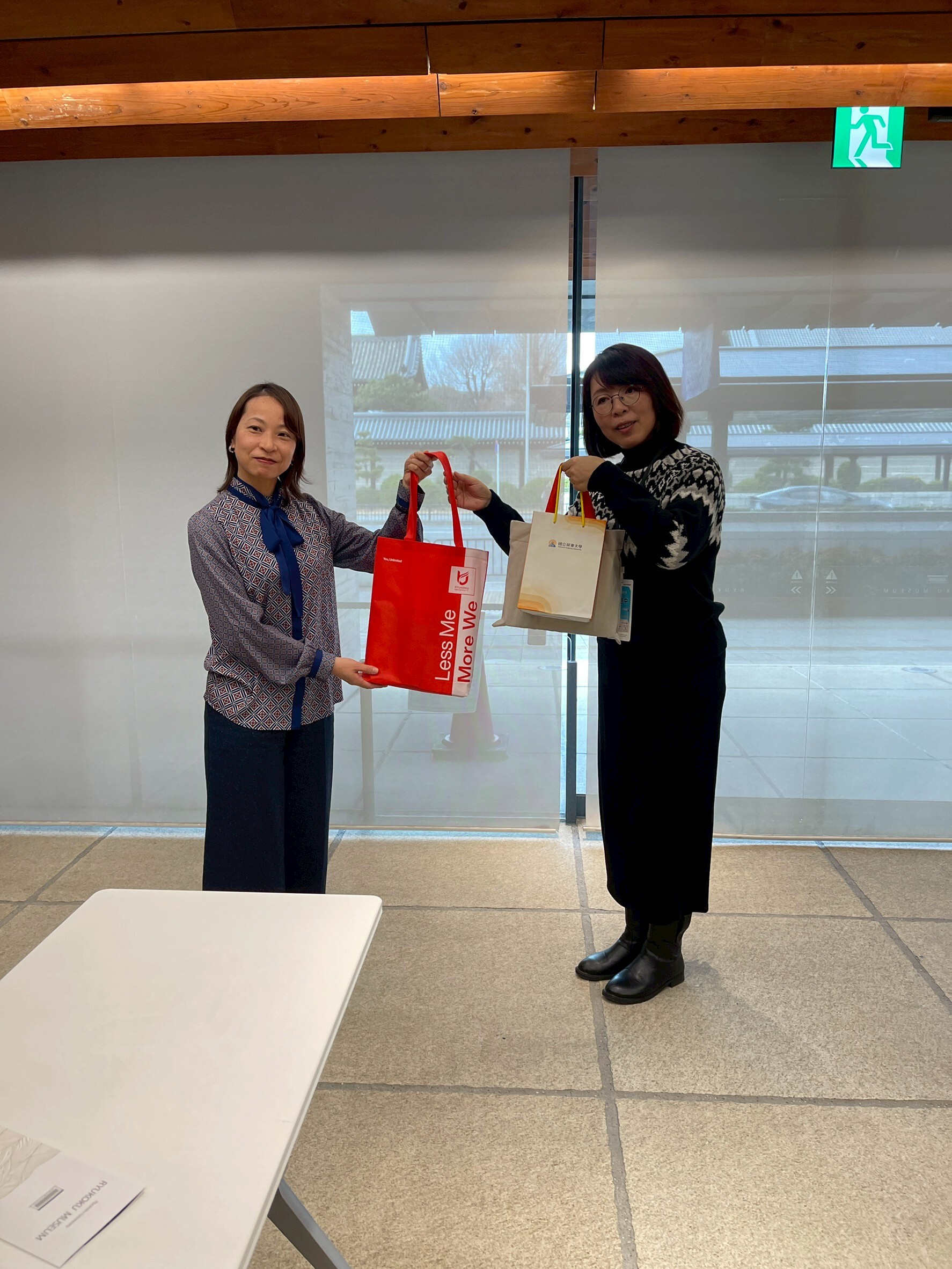 21日參訪團轉往立命館大學「藝術研究中心」(Art Research Center, ARC)。該中心是日本文化數位典藏的領航者之一,由中心長赤間亮教授、情報理工學部中山雅人教授,以及衣笠総合研究機構・特別招聘研究教員 Travis Seifman 准教授親自主持座談。赤間教授介紹了ARC如何建立龐大的浮世繪與傳統藝能資料庫,並將其開放於國際學術共享。同時立命館大學文學部也推動「クロスメジャー制度(Cross-Major Program)」,透過田野調查與實習課程,複合式地學習京都的歷史、地理與文學,運用數位技術於人文學各領域的主題、素材與資源,進而探究人文科學。學生在深耕人文底蘊後,才選擇適切的數位工具作為載體,實現『以人為本』的科技應用,導入針對地域課題進行研究的專案型計畫,展開對地域問題解決與永續發展有貢獻的行動。