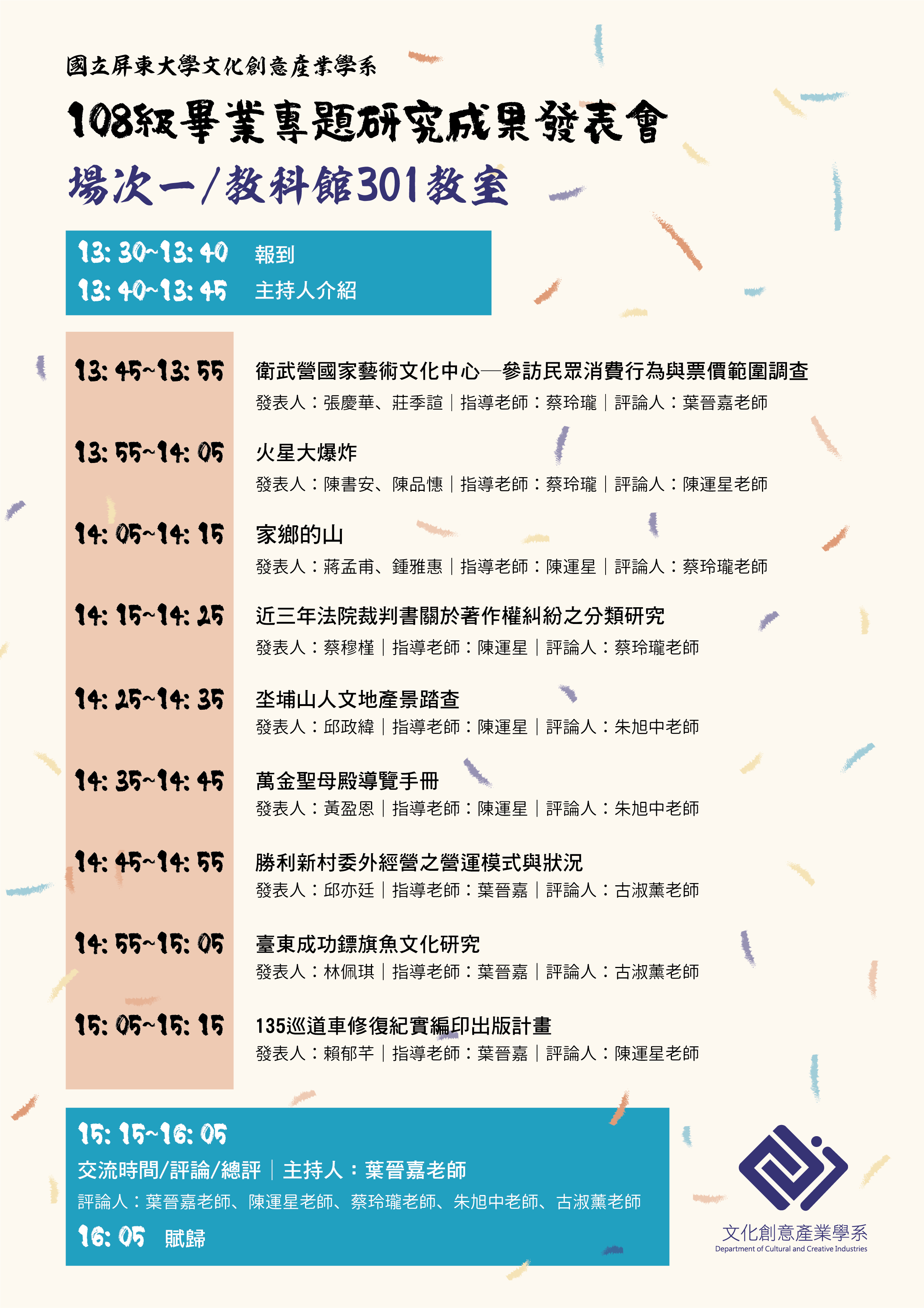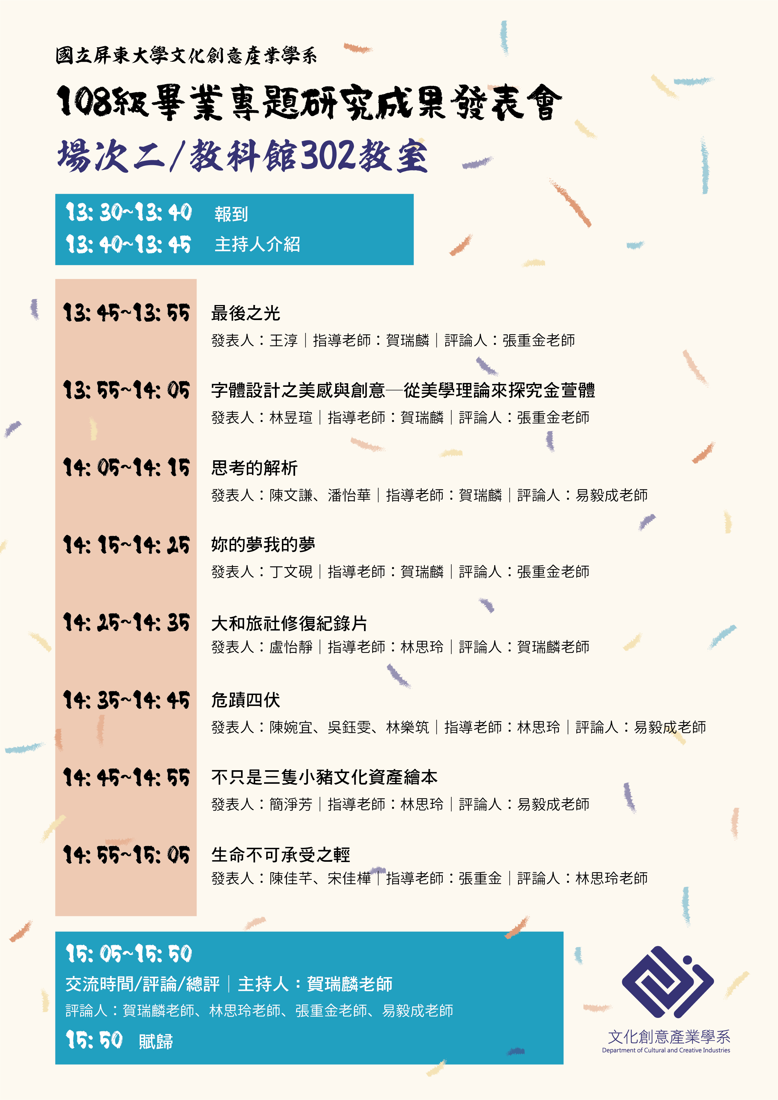 兩場次同時進行(詳情請看流程表),同學可選擇有興趣之研究主題參加!